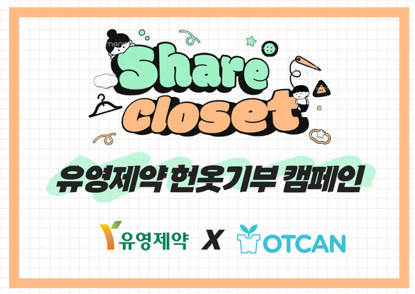 '쉐어클로젯'은 유영제약이 2021년부터 매해 실천하고 있는 사회공헌 캠페인으로, 입지 않는 옷을 공유해 나눔을 실천하고 의류 재활용을 통해 환경 보호에 기여하자는 취지로 진행되고 있다.
