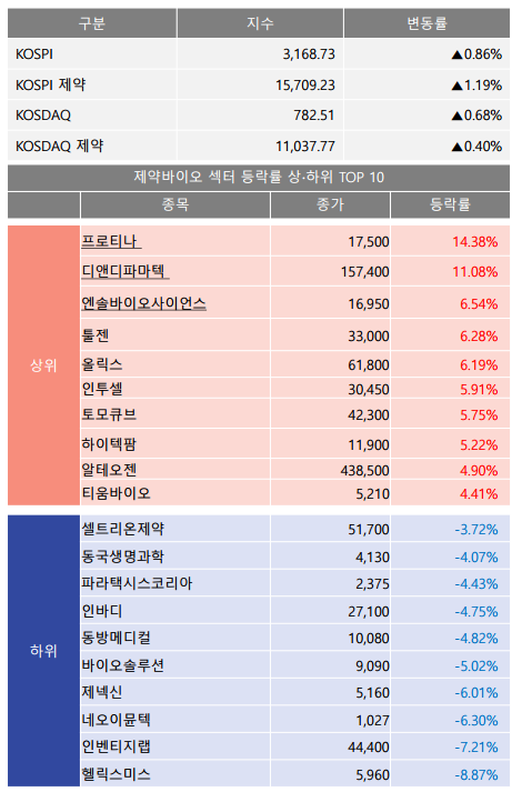프로티나와 디앤디파마텍 주가가 큰 폭으로 상승하며 투자자들의 주목을 받았다.