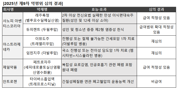 건강보험심사평가원은 4일 2025년 제9차 약제급여평가위원회를 개최하고 급여결정 신청 약제의 급여적정성을 심의했다.