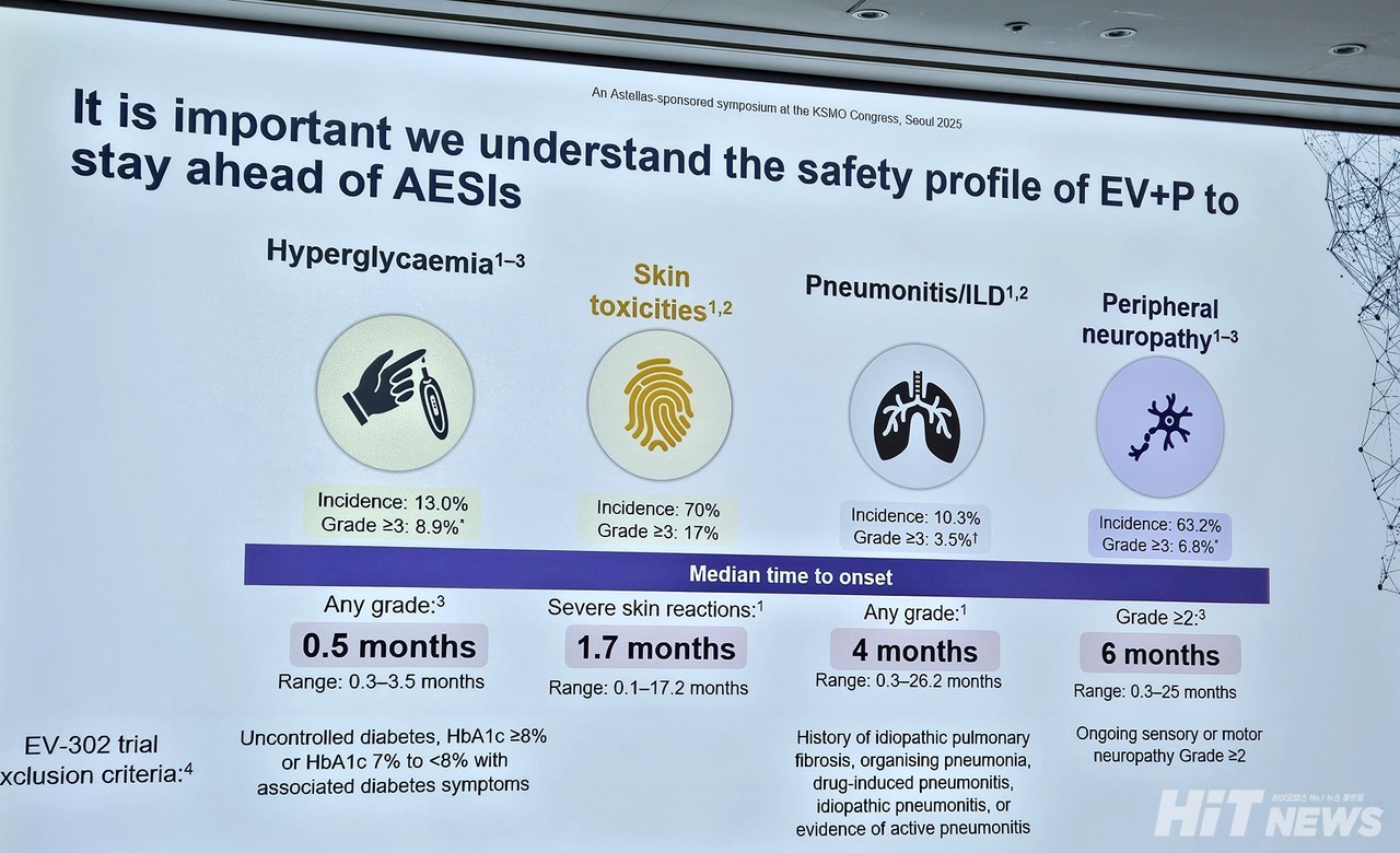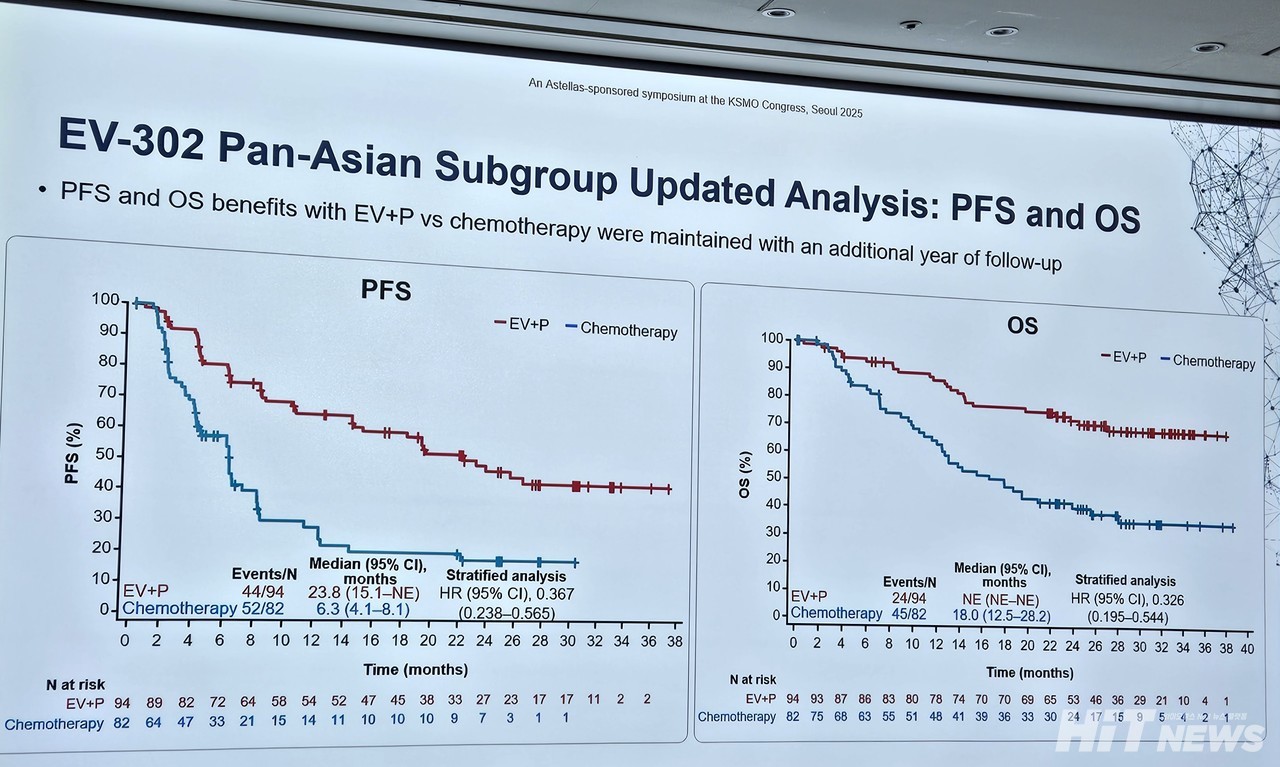5일 대한종양내과학회 연례학술대회(KSMO 2025)에서 파드셉과 키트루다 병용요법을 연구한 3상 임상시험 'EV-302' 연구의 28.1개월 중앙 추적 기간 시점의 아시아 환자군 하위분석 결과가 소개됐다.