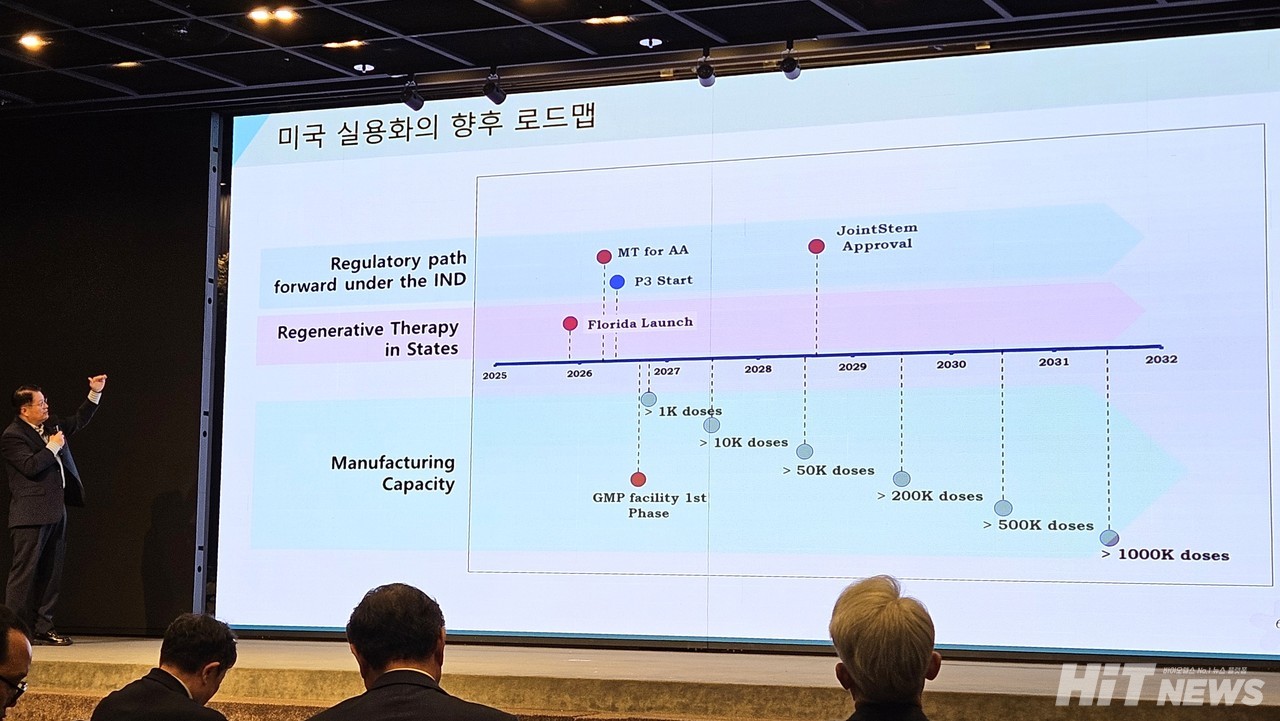 라 회장은 "지난 7월 1일 플로리다에서 줄기세포 재생의료 상용화를 추진하기 위한 법안이 발효됐다. 의사가 FDA의 승인을 받지 않은 줄기세포 치료를 특정 조건 하에 시행할 수 있도록 허용하는 법률"이라며 "FDA에 등록된 시설에서 제조된 치료제에 한 하는데, 네이처셀은 이미 미국 임상시험용의약품 생산과 관련 FDA에 국내 제조시설이 등록돼 있다. 조인트스템이 플로리다에서 사용되는 문제가 없어 보인다"고 설명했다.