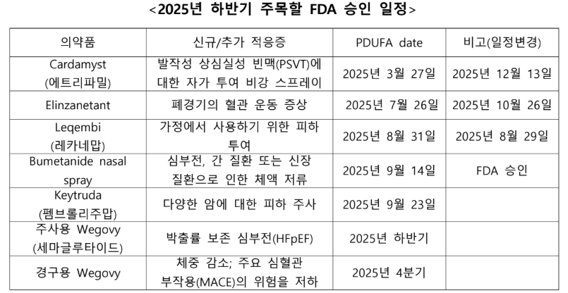 미국 식품의약국(FDA)이 올해 하반기에도 굵직한 신약과 기존 약물의 새로운 제형 허가를 앞두고 있어 주목된다.