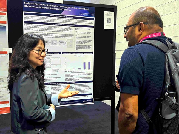 이어 허계연 CMC 서포트(Support)팀 팀장은 포스터 발표에서 '분석법 공동 적격성 평가: 개발부서(CDO)와 품질관리(QC)간 cGMP 생산을 위한 기술이전의 효율성 강화 및 개발 일정 가속화 전략'를 주제로 발표했다.
