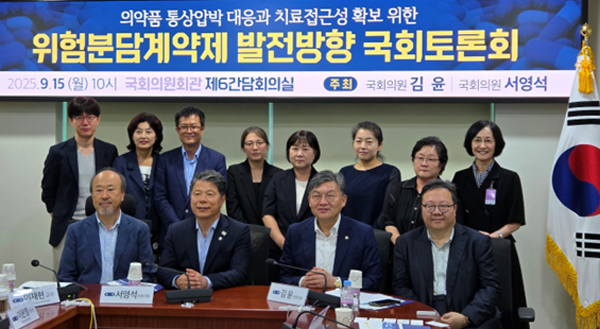 9월 15일 국회 보건복지위원회 더불어민주당 김윤 의원과 서영석 의원 공동주최로 '의약품 통상압박 대응과 치료접근성 확보 위한 위험분담계약제 발전방향 국회토론회'가 열렸다.