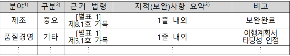 식약처는 동시에 '중대·중요' 지적 사항의 보완 여부를 실사 보고서에 함께 명시할 예정이다. '기타' 지적사항과 관련해 보완계획서의 타당성 인정 여부도 함께 기술할 예정이다.