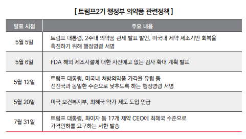 결국 트럼프 2기 행정부는 미국 우선주의, 보호무역주의 정책 기조를 반영해 의약품 관련 정책을 잇따라 발표하며 제약바이오 시장에 파장을 몰고 왔다.