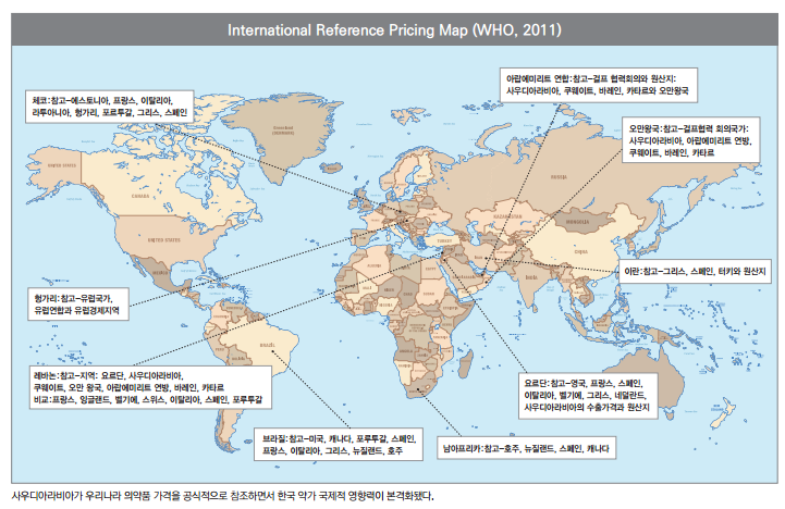 이화여자대학교 융합보건학과 안정훈 교수에 따르면 2013년 사우디아라비아가 우리나라 의약품 가격을 공식적으로 참조하면서 한국 약가의 국제적 영향력이 본격화됐다. 사우디아라비아는 신약 시장 진입 허가 시 '폼 30(Form 30)'이라는 문서를 통해 제약사가 판매 중인 30개국 약가를 제출 받으며 이를 기준으로 약가를 책정하는데 당시 한국이 처음으로 공식 참조국에 포함된 것이다.