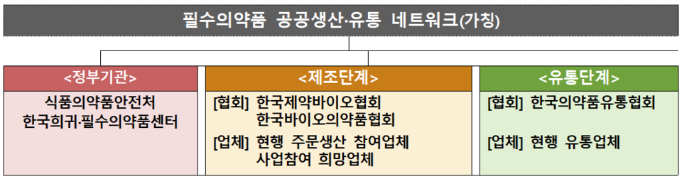 특히 주문 생산 품목 선정, 참여 희망 업체 탐색, 지원 제도 등을 논의하는 정부-협회·단체-제약사 간 상설 네트워크다.