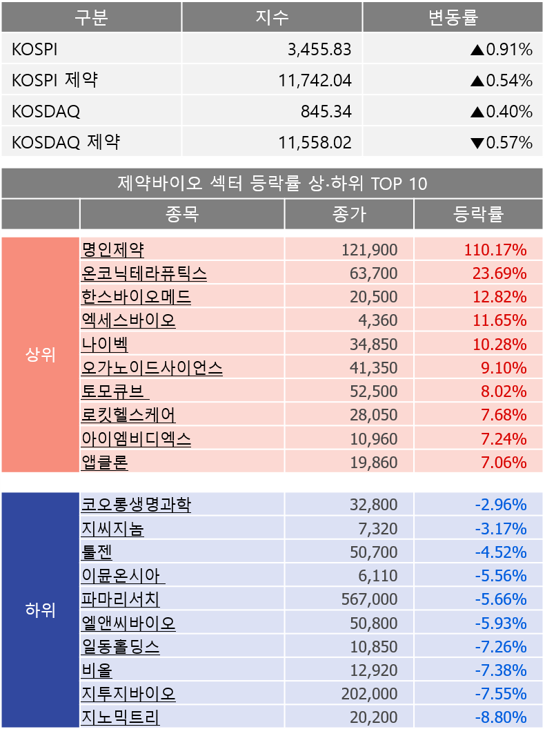 2025년 10월 1일 제약바이오 증시브리핑