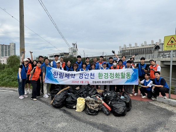 한림제약(대표 김정진)은 지난 9월 27일 용인시와 수자원본부가 주관한 '2025년 맑은 하천 사회공헌사업'의 일환으로 용인시의 경안천 수포교 인근에서 환경정화 활동을 진행했다고 14일 밝혔다.