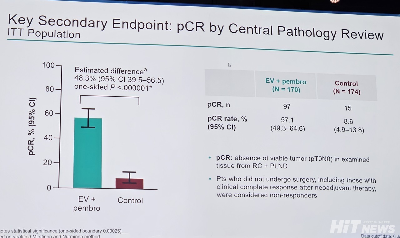 키트루다 병용군은 전체생존기간(OS) 및 병리학적 완전 관해율(pCR) 등 주요 2차 평가변수에서도 유의미한 개선을 입증했다.