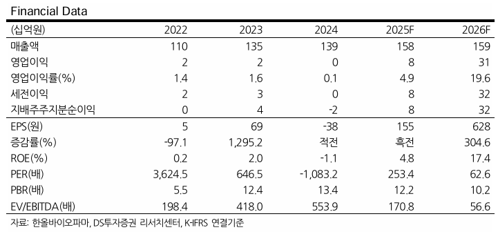 DS투자증권 김민정 연구원은 이러한 기대를 반영해 한올바이오파마의 목표주가를 5만 원으로 상향 조정했다.