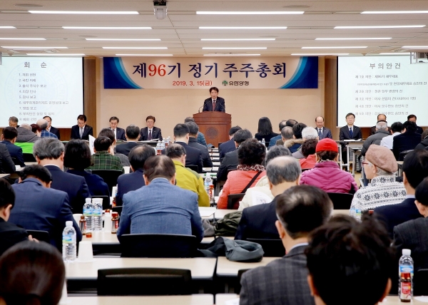 유한양행은 제96기 정기 주주총회를 열어 매출액 1조5188억원, 영업이익 501억원, 당기순이익 583억원(별도 1조5067억원, 영업이익 609억원, 당기순이익 814억원)을 보고하고 보통주 1주당 배당금 2000원, 우선주 2050원의 현금배당(총 227억)을 승인받았다. 아울러, 김재교 전무를 신규이사로 선임했다.