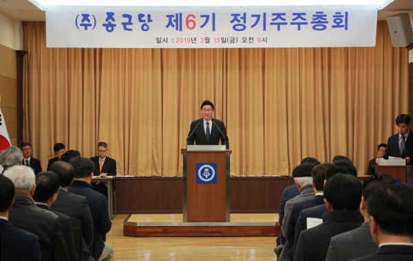제6기 정기 주주총회를 연 종근당은 2018년도 연결기준 매출액 9562억원, 영업이익 757억원의 실적을 달성했다고 보고했으며 액면가 대비 36%인 주당 900원을 현금배당 하기로 했다. 이어 김창규 영업본부장을 사내이사로 재선임하고 홍순욱 전 한국의료기기산업협회 상근부회장과 강인수 숙명여대 경제학부 교수를 사외이사로 신규 선임했다.