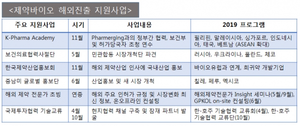 “한국제약산업홍보회는 바이오코리아와 연계해 국내기업들의 기술력 등을 소개하는 지원 프로그램인데, 올해는 처음으로 바이오유럽으로 홍보회를 확대시키고 희귀의약품에 강점을 갖는 업체들로 꾸릴 예정입니다. 보건의료협력사절단은 유라시아, 글로벌 홍보단은 중남미, 국제투자 협력 기술교류 사업은 호주 등 잠재력 있는 각각의 시장을 타깃으로 지원사업을 벌이고 있습니다.”