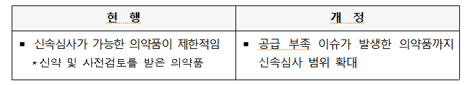 공급부족 발생 의약품 등을 우선하여 심사할 수 있는 행정지원 근거 마련