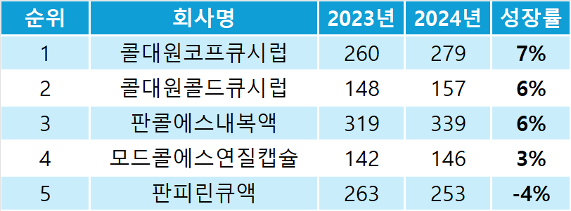 약국가는 기침 및 감기 치료제 톱5 중에서도 콜대원코프큐시럽과 콜대원콜드큐시럽의 성장률이 각각 7%, 6%를 기록한 점을 주목했다.