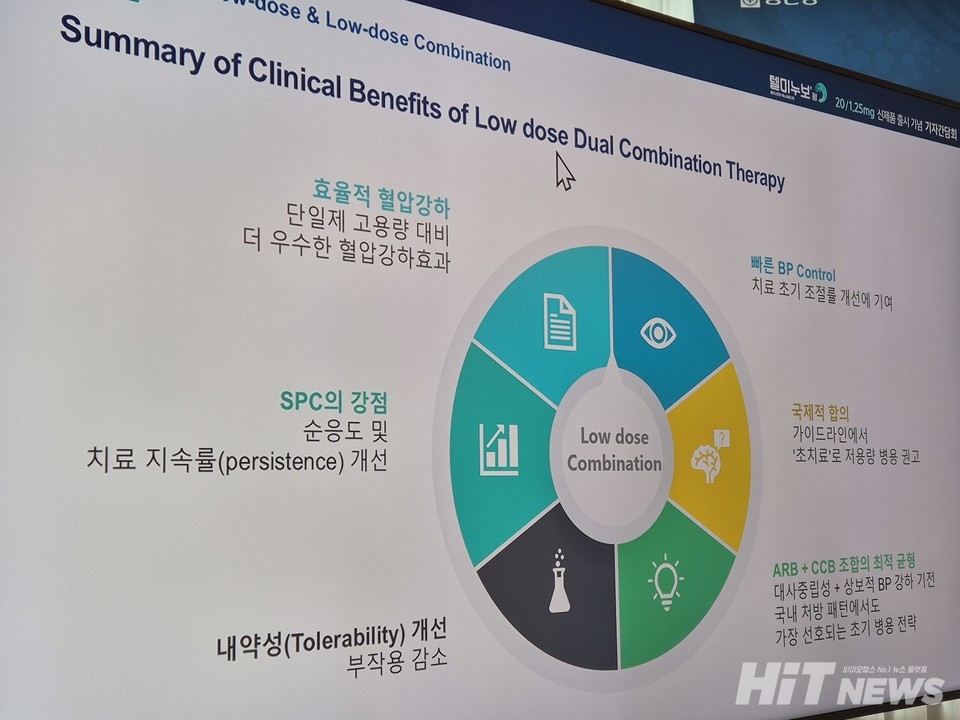 종근당이 저용량 복합제 '텔미누보 20/1.25mg'을 출시하며 초기 고혈압 시장 공략에 나섰다. 의료진은 젊은 환자들의 낮은 치료율과 순응도 문제를 언급하며 부담이 적은 시작용량이 초기 진입 장벽을 낮추는 데 의미가 있을 것으로 기대했다.