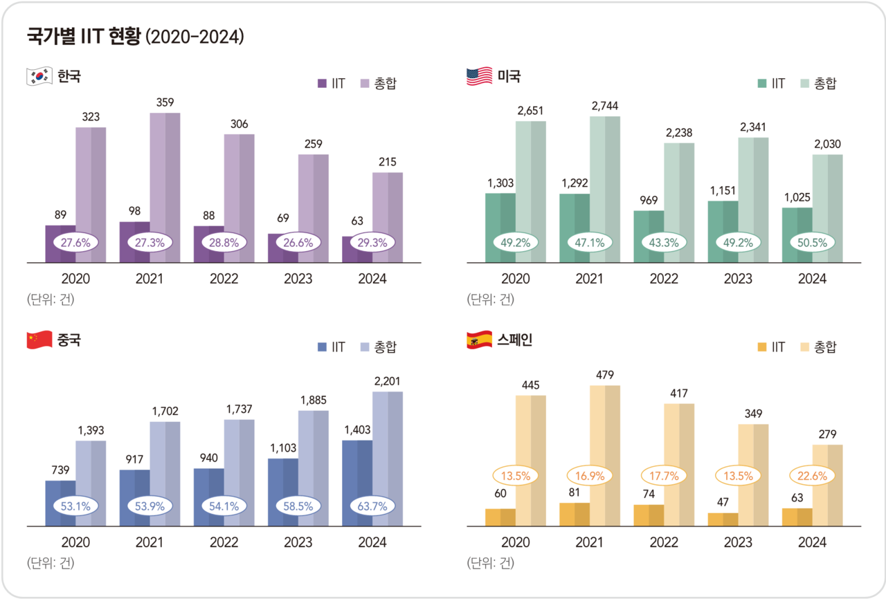 김 교수는 국내 전체 암 임상시험 중 연구자 주도 암 임상시험(IIT)가 차지하는 비율이 29.3%에 불과하다고 꼬집었다. 글로벌 임상 순위가 비슷한 미국과 중국의 경우는 매년 40~60%의 비율을 보이고 있는 점과 상반된다.