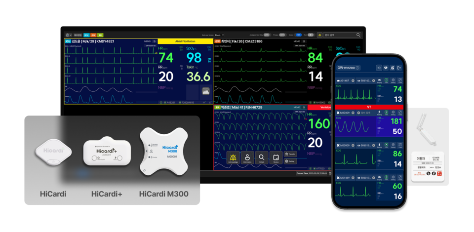회사 측은 "하이카디는 단일 채널 심전도 기반 제품으로 제도권 의료 현장에서 먼저 사용되며 안정성과 활용성을 검증받았다"며 "이후 의료진 요구와 병원 운영 환경을 반영해 하이카디플러스(HiCardi+)로 라인업이 확장됐고 최근에는 다채널 심전도 기반 하이카디 M300까지 확대되면서 병동·병원 단위의 복합적인 실시간 모니터링이 가능해졌다"고 말했다.