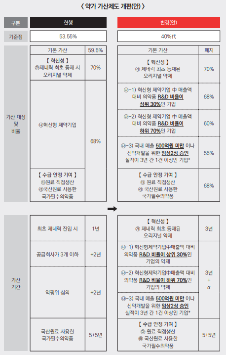 약가  혁신형 R&D비율로 가산 차등... 오리지널 3년 가산