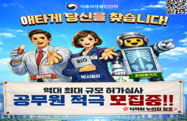 식품의약품안전처가 신약, 바이오시밀러, 의료기기 분야에서 일할 허가·심사 담당 공무원 198명을 공개 채용한다.