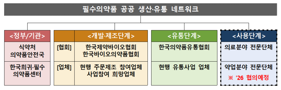 식약처는 2026년 11월부터 국가필수의약품 안정공급 협의회(정부 협의회)를 민-관이 공동 참여하는 수급 논의 거버넌스로 개편할 계획이다.