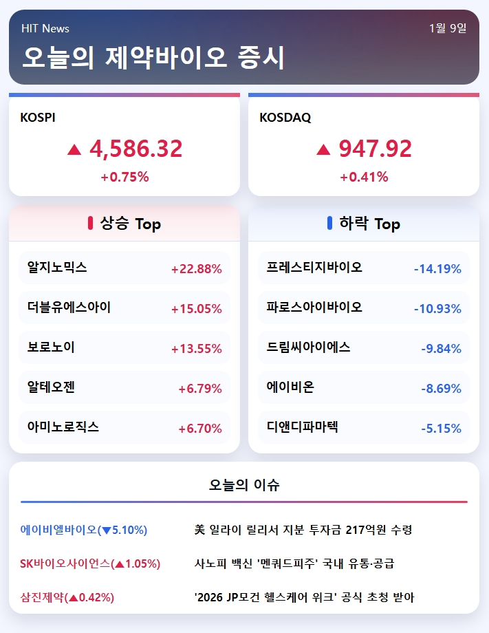 2026년 1월 9일 제약바이오 증시브리핑