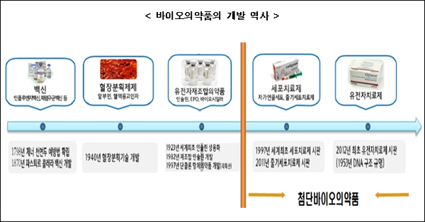 '첨단바이오의약품'은 세포치료제, 유전자치료제, 조직공학제제, 첨단바이오융복합제제, 그 밖에 세포나 조직 또는 유전물질 등을 함유하는 의약품으로서 총리령으로 정하는 의약품 등으로 분류해 각각 정의했다.