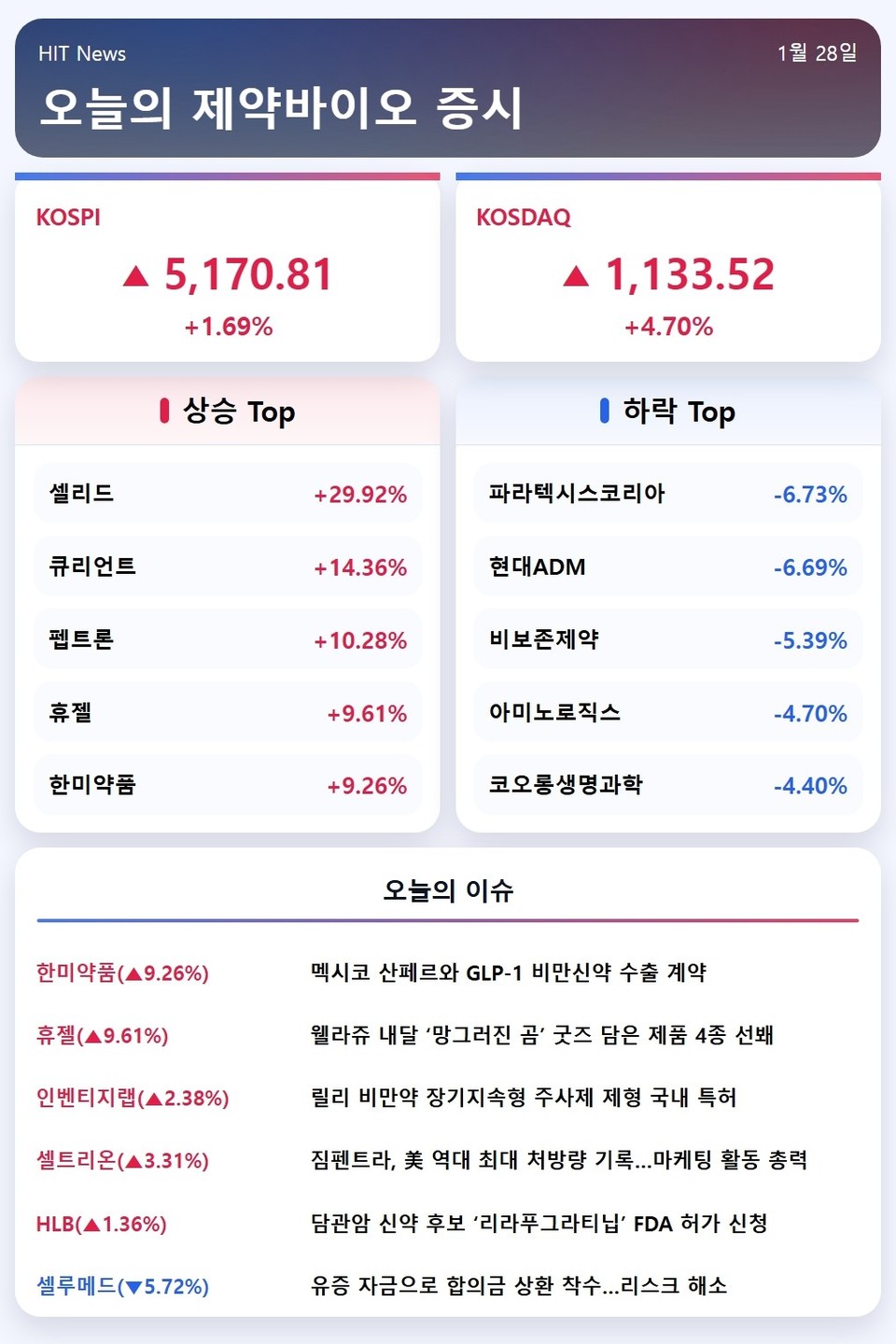 2026년 1월 28일 제약바이오 증시 브리핑