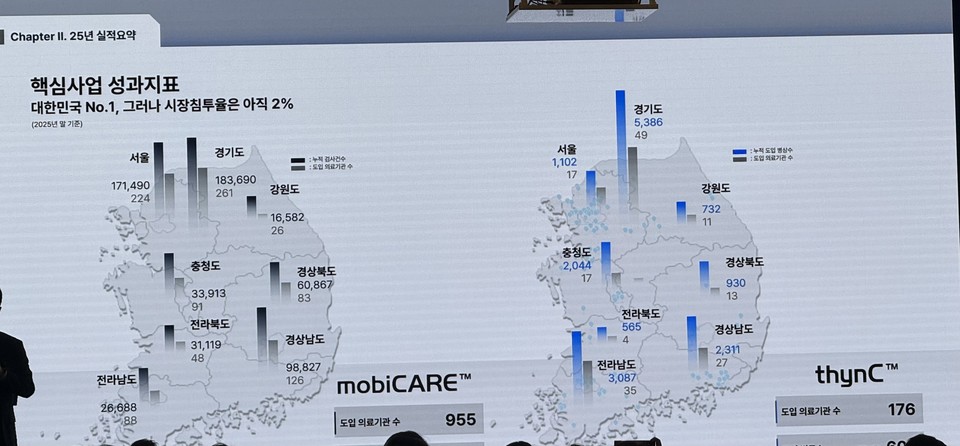 그러면서 향후 매출도 지속 상승할 것으로 전망했다. 씽크의 경우 지난해 기준 약 1만1014개가 설치됐고 올해까지 5만4000개로 설치수를 늘릴 방침이다. 대형검진센터 외래진단 서비스 도입으로 모비케어의 도입률도 높일 계획이다.
