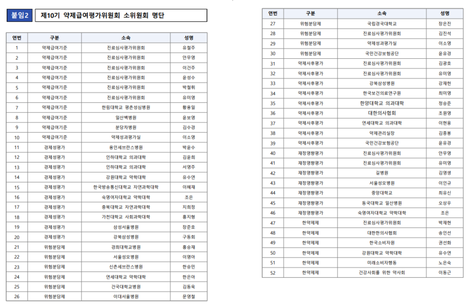 제10기 약평위 위원의 임기는 2026년 1월부터 2027년 12월까지 2년이며, 위원들은 약제의 요양급여대상 여부 및 상한금액의 결정과 조정 등 전문적인 평가를 담당한다.