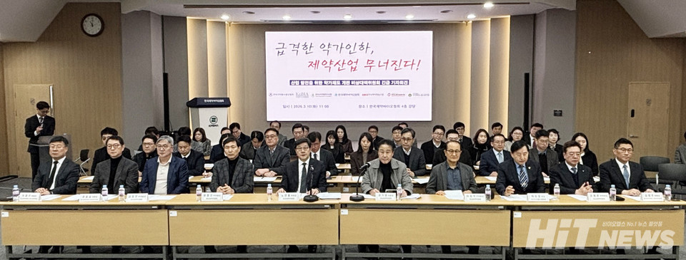 제약바이오 5개 단체(한국제약바이오협회·한국바이오의약품협회·한국의약품수출입협회·한국신약개발연구조합·한국제약협동조합·한국노동조합총연맹·전국화학노동조합연맹)가 모인 비상대책위원회는 10일 오전 협회에서 긴급 기자회견을 열고 정부의 약가인하 강행을 전면 재고할 것을 촉구했다.