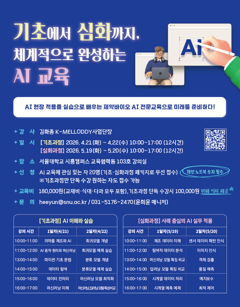 정= 그렇다. 제조·품질관리 분야에서 AI를 다루는 교육 자체가 국내에는 거의 없다. 앞으로 수요는 분명히 늘어날 텐데 준비된 인력이 부족한 상황이다. 실제로 삼성바이오로직스, 셀트리온을 비롯한 많은 기업들이 이미 AI 인력 확보와 도입을 적극적으로 추진 중이다. 이번 과정은 그런 수요를 대비해 미리 인력을 양성하자는 취지에서 만들었다.