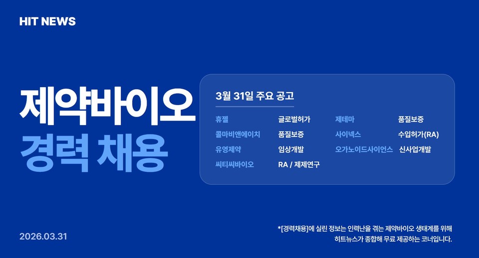 제약바이오 경력직 채용정보(3/31)