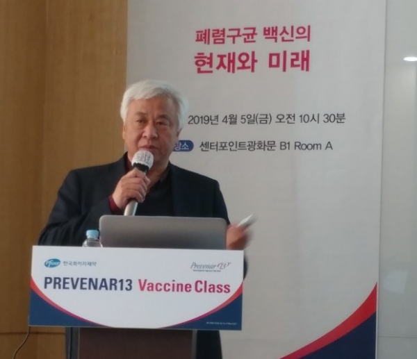 가톨릭의대 백신바이오 연구소장 강진한 교수(대한백신학회 회장)는 5일 센터포인트 광화문에서 열린 ‘2019 프레베나 13 백신클래스’에서 만성질환을 앓고 있는 성인에게도 폐렴구균 백신 접종이 필요하다며, 이 같이 말했다.