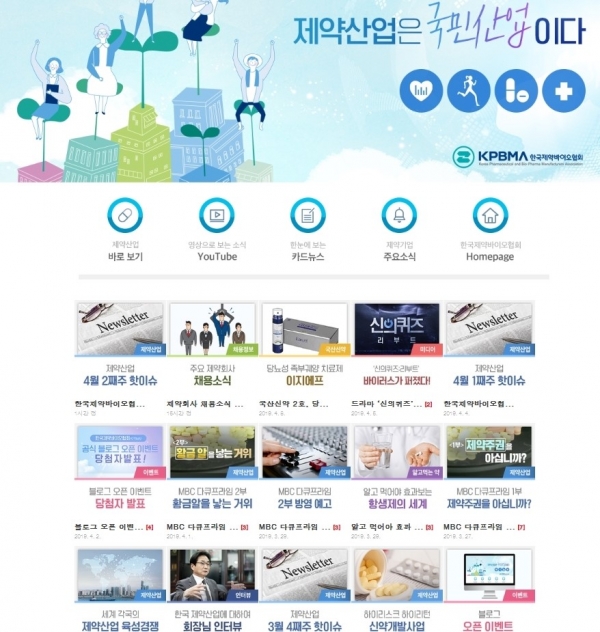 네이버 블로그는 제약산업의 주간 이슈와 원희목 협회장 인터뷰, 국산신약 집중탐구 등의 콘텐츠를 포함하고 있다. 제약회사들의 인재 채용현황도 한 눈에 볼 수 있도록 소개해 취업준비생들에게 도움을 주고 있다. 네이버 포스트는 인공지능(AI)을 활용한 신약개발 현황과 윤리경영 등 제약업계의 최근 동향을 카드뉴스로 알기 쉽게 전하고 있다.