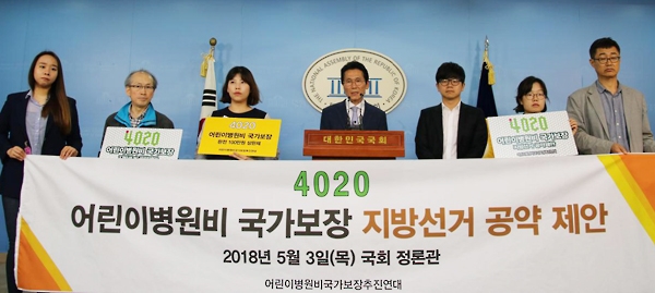 정의당 윤소하 의원과 오건호 어린이병원비국가보장추진연대 공동대표, 이명묵 어린이병원비국가보장추진연대 집행위원장, 유원선 함께걷는아이들 사무국장, 김재훈 세상을바꾸는사회복지사 간사 등은 지난 3일 국회정론관에서 기자회견을 갖고 이 같이 밝혔다,