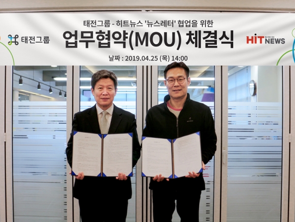 태전그룹과 히트뉴스는 지난 25일 서울 마포구 동교로 태전빌딩에서 양사 경영진이 참석한 가운데 ‘뉴스레터 협업을 위한 업무협약 체결식’을 가졌다.