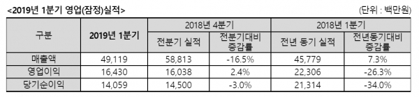매출액은 전년동기대비 7.3% 증가, 영업이익은 전 분기 대비 2.4% 증가한 수치로, 영업이익률 역시 전분기 보다 6.2% 증가한 33.4%를 기록했다.