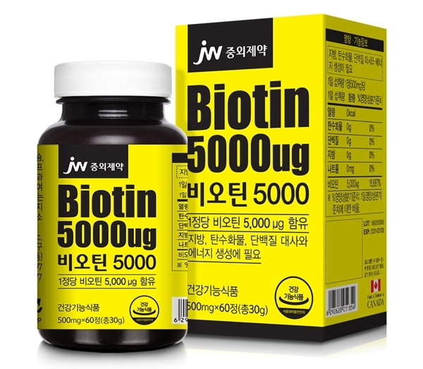 비타민B군에 속하는 수용성 비타민 ‘비오틴’을 주성분으로 하는 ‘비오틴5000’은 손상된 손발톱 건강과 모발관리에 도움을 줄 수 있는 건강기능식품이다. 제품의 주성분인 ‘비오틴’은 비타민B군에 속하는 수용성 비타민으로, 에너지대사와 면역력 향상 등 전반적인 건강 증진을 돕는 것으로 알려져 있다.