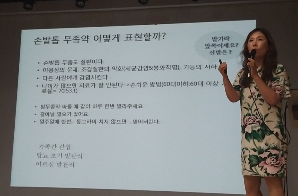 황은경 약사(오거리약국)는 진균증을 주제로 강의했다. 황 약사는 "여름이 되면 진균 감염이 늘어난다. 대개 환자들은 요즘같은 시점에서 치료제를 구매해 9월까지 쓴다"고 했다.