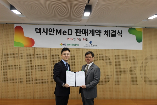GC녹십자웰빙(대표 유영효)은 지난 24일 경기도 분당에 위치한 본사에서 프랑스 더모코스메틱 그룹인 피에르파브르 더모코스메틱 코리아(Pierre Fabre Dermo-Cosmetics Korea)와 ‘덱시안 MeD 크림(Dexyane MeD Cream)’의 판매 계약을 체결했다고 27일 밝혔다.