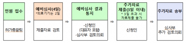 예비심사결과 통지 후 3일 이내 신청인이 공용메일을 통해 미비자료를 제출하는 경우, 허가신청 시 이미 제출된 자료와 함께 정식 심사절차 진행하게 된다.