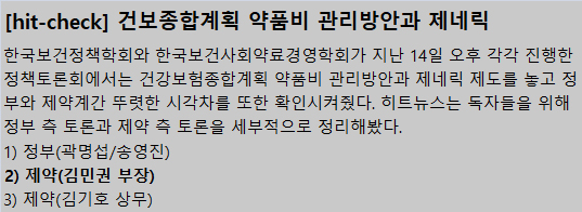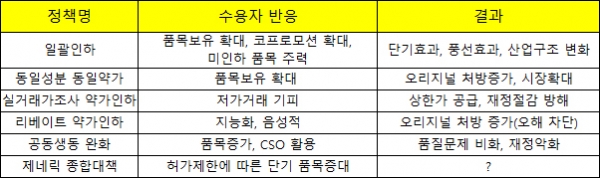 동일성분약가제도가 가격경쟁이라는 제도 취지를 살리지 못한 점은 '정책실패라고 인정할 수 있다(송영진 보건복지부 보험약제과 사무관)'고 고백한 것도 결국엔 제네릭이 문제라는 걸 설명하기 위한 '수사'로 보인다.